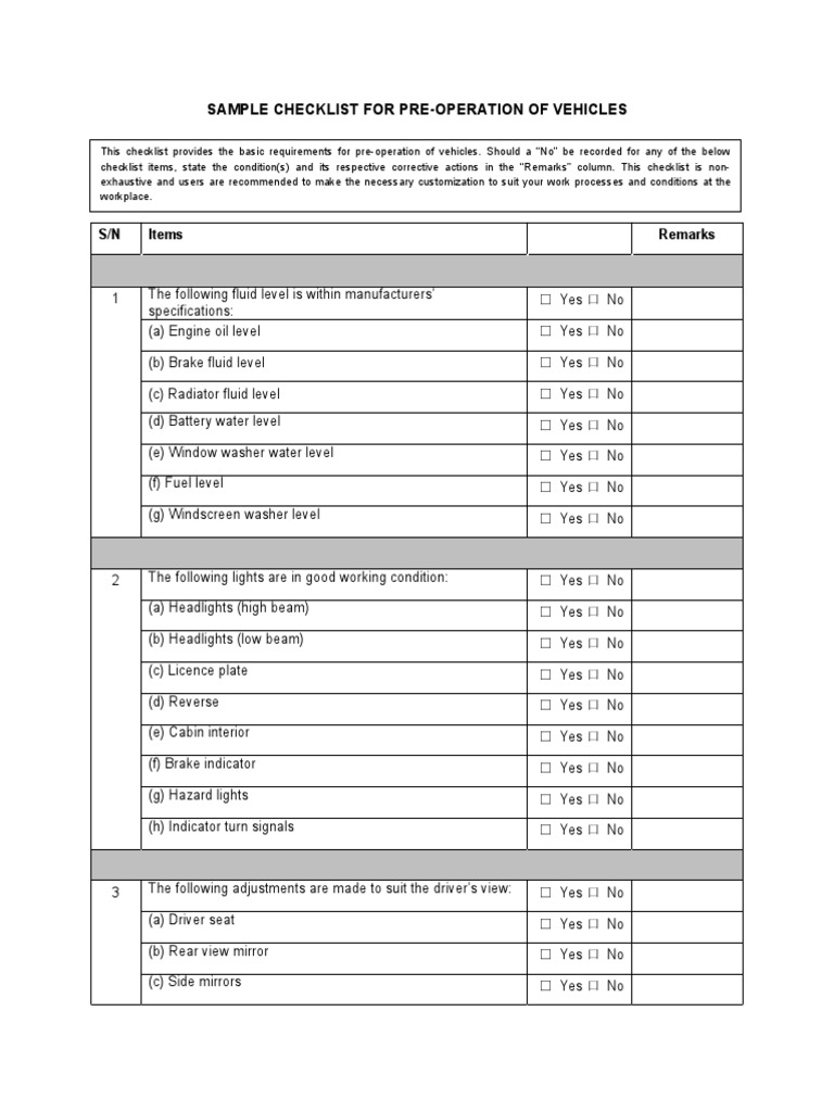 Vehicle Checklist 02 PDF Car Body Styles Vehicles